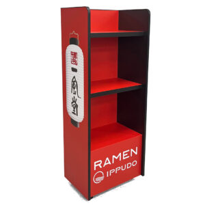 お引合いただいた時点でお客様のビジョンが見えていたので、過去の制作実績から近い形状のものをご提案しスムーズに試作やデザインの話に入れました。インパクトのあるデザインは裏表で異なる商品訴求が出来るため、店頭のニーズに沿って使い分け出来る便利な仕様になりました。